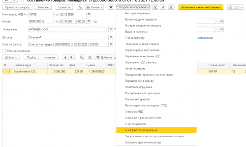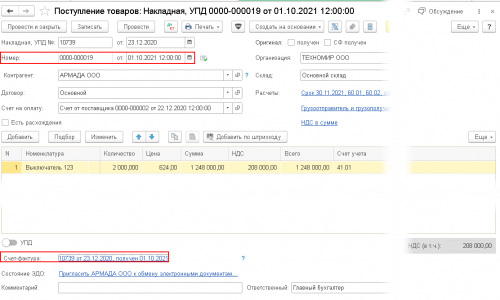 Сравните со своей формой Поступления (акт, накладная, УПД), видите?