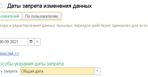 Давайте еще смотреть Администрирование — Настройки пользователей и прав — Дата запрета изменения.