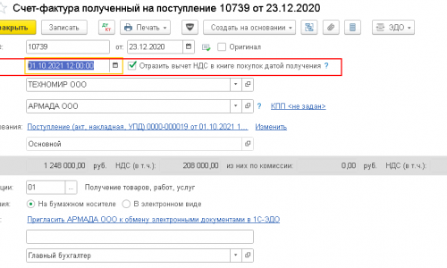 Обратите внимание на скрины, что вам дали консультанты: дата СФ полученной должна быть у вас не 23.12.2020, а 1.10.2021.