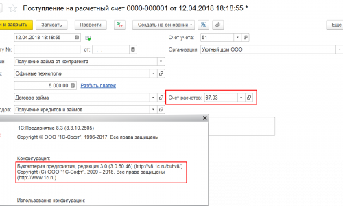 Ранее (в 2017 году) вводила документ Поступление наличных (или на р/сч) с видом Поступление займа от контрагента. Было поле для выбора счета, выбирала 66, т.к. займ краткосрочный. Сейчас этого поля нет, программа автоматически проводит по 67 счету. Причем возврат займа (выдача наличных) тоже проходит по 67 счету, хотя ранее прошло получение по 66. Контрагент тот же, договор займа тот же (он вообще один). Точно не уловила, когда такая ситуация с проводками началась, скорее всего после какого-то обновления. И после Нового года. Пока приходится исправлять счет в проводке Ручной корректировкой в Движение документа. Помогите понять, как вернуть поле для выбора счета в документах Поступление (наличных или на р/сч)/Выдача с видом Получение займа от контрагента /Возврат займа контрагенту. Или как другим способом выбирать счет, чтоб проводки формировались по 66 счету.