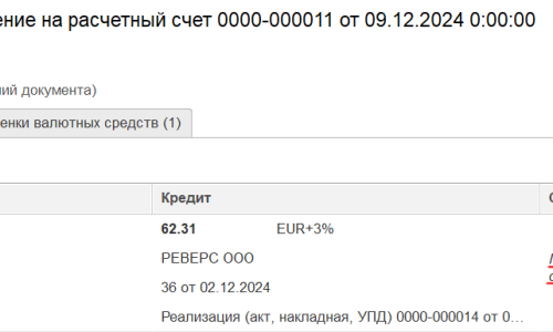 В Реализации договор Евро+3%, в Поступлении на расчетный счет так же договор Евро+3%.