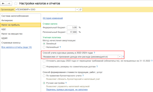 Где настроить учетную политику, если у нас ООО на УСН доходы-расходы и нет налога на прибыль?