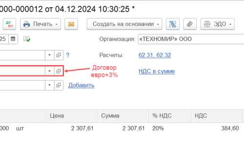 Во всех документах (кроме Счета) используется договор Евро+3%.