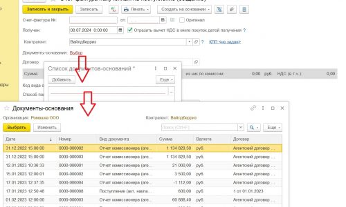 и еще к сф подбирается только один документ на основании которого я создаю сф. нет возможности подтянуть туда весть перечень отчетов агента. видимо потому что в них не проставлена ставка ндс