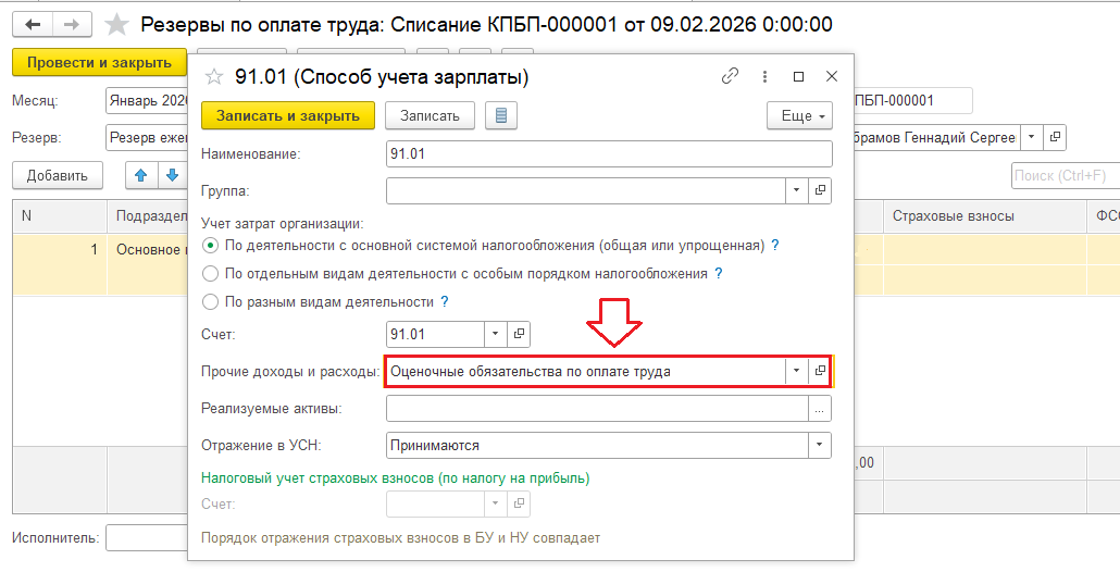 Елена, получилось создать списание премии за 2024 -УРА!. Только помогите еще , пожалуйста. Обновились до версии 3.0.191.41, но все равно встаёт счет 26, не 91.01. Может, надо создать дополнительный способ отражения? В приложении видно, что там не как в Вашем примере- сразу вписываем 91.01, а есть выбор способа отражения.