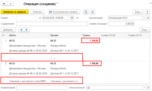 Заключен с договор с иностранным контрагентом . Оплачиваем услуги и перечисляем НДС в бюджет при списании с р\сч счет 68.32 выбираем отражение в бухгалтерском учете по кнопке заполнить должна показаться операция оплата контрагенту. но появляется несколько списаний и они тянуться с 2017 года. Первая строка в срине вообще без суммы и она постоянно попадает в книгу покупок. Как это все почистить не влезая в 2017 год