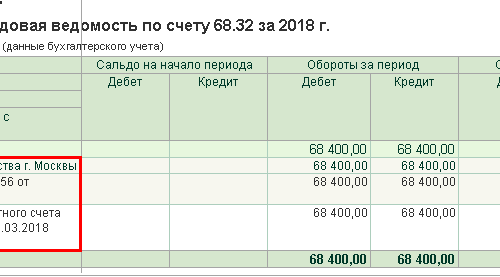 Всего скорее у вас не заполнена какая-то аналитика. Давайте сформируем отчет Оборотно-сальдовая ведомость по счету 68.32 и проверим все субконто (Контрагент, Договор, Документ расчетов).