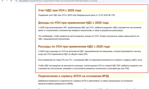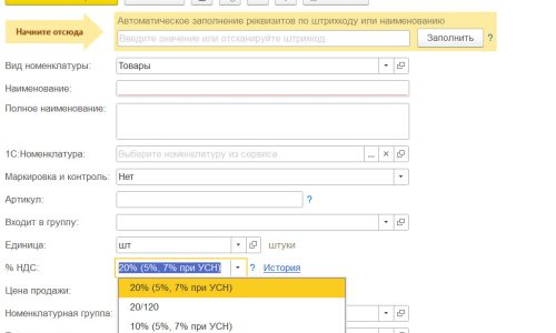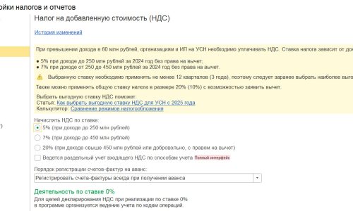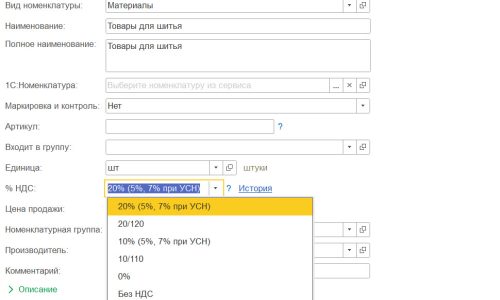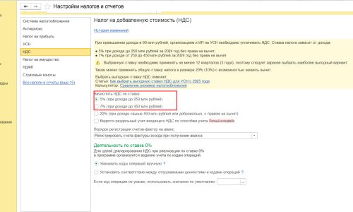 Отсутствует НДС 5% и 7 % в карточке Номенклатуры товара с 2025 в 1С