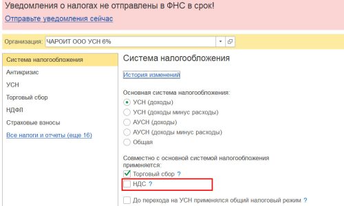 Смотрите, вот у меня включен этот флаг по одной из организаций по УСН и в поле ставки НДС — у меня новые ставки!