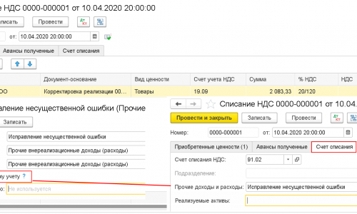 В этом квартале ошибку исправили — проведено сторно документа «реализация». Но т. к. сумма незначительная, решили не подавать уточненку по НДС и «вычеркнули» из сторно проводку по счету 90.03.
