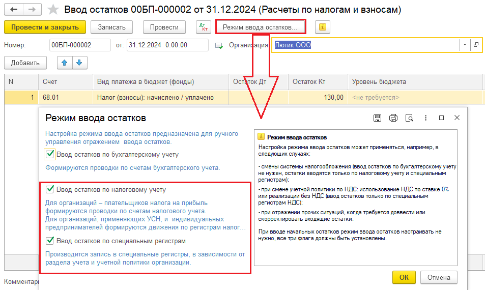 Т.е. если мы введем остатки по НДФЛ, с галочкой по всем регистрам: