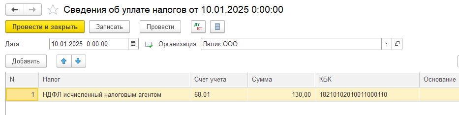 То мы их должны закрыть документом Сведения об уплате налогов.