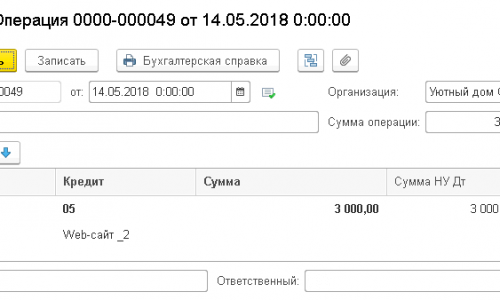 Дальше этим же днем оформите документ Операция, введенная вручную в разделе Операции — Бухгалтерский учет — Операции. введенные вручную.