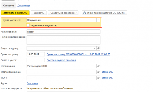 Если здания , гараж и прочие хоз. постройки не зарегистрированы как недвижимость, то в справочнике Основные средства у ОС снимите флажок Недвижимое имущество