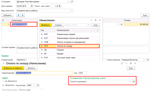 Способ отражения зарплаты в бухгалтерском учете 1С 8.3 Бухгалтерия 3.0