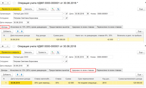 Проверьте, пожалуйста правильность заполнения докумкнта Операция учета по НДФЛ.