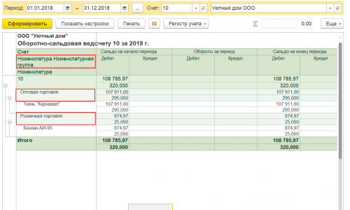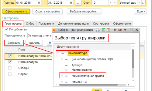 Подскажите, пожалуйста, возможно ли видеть приход счетов 10и 41 в разрезе НОМЕНКЛАТУРНЫХ ГРУПП?