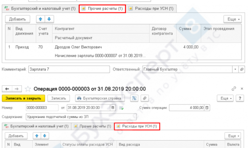 Юлия, я вас понимаю. Поэтому мне и нужны проводки, чтобы понять или хотя бы вид движения Приход/Расход в регистрах. Вы прислали отчеты/таблицы без этих данных. КУДиР в целом сложный, а зарплата вдвойне, т.к. там анализируется 2 регистра. Если сошлось в Прочих расчетах, то фиксируется в Расходах УСН как прошла оплата и уже потом уже в КУДиР.