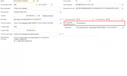 Это поле Погашение задолженности