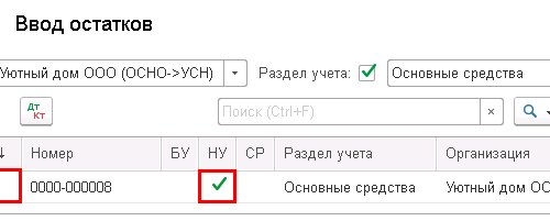 1. Введены ли остатки в регистр Первоначальные сведения ОС (налог. учет УСН)