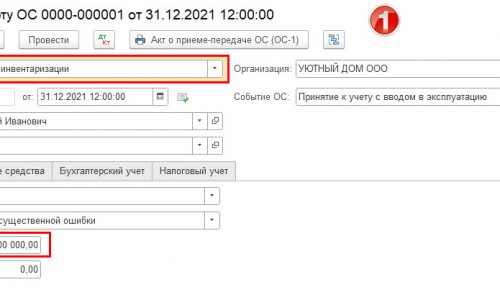 Будет сформирована проводка Дт 01.01 Кт 91.01 — ее нужно подкорректировать, но лучше сделать не в этом же документе а в документе Операция введенная вручную — см.п.2