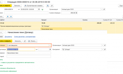 По аналогии, когда Заказчик сам удерживает сумму неустойки при оплате нам, делала ручную проводку начисления неустойки с видом договора : Прочее…