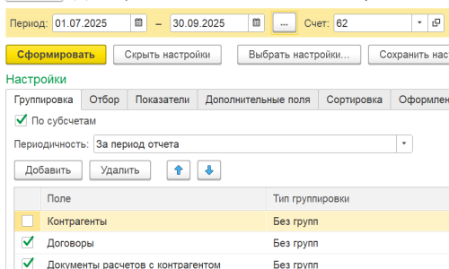 Пришлите по контрагенту ОСВ по сч.62 в разрезе субсчетов, договоров, документов расчетов (как на скрине).