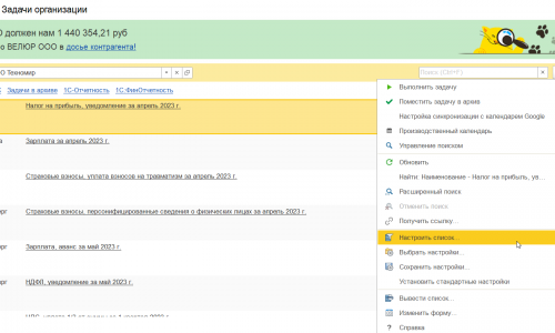 Например, мне не нужна задача Уплата НДС, так как я им не занимаюсь, а другому пользователю она нужна.