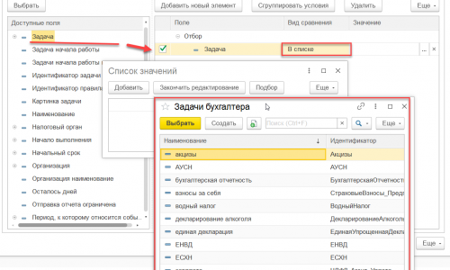 На вкладке Отбор отберите те задачи, с которыми работаете, возможно, тут придется поэкспериментировать. Я отобрала для работы налоги по имуществу, земельный, транспортный и т.д..