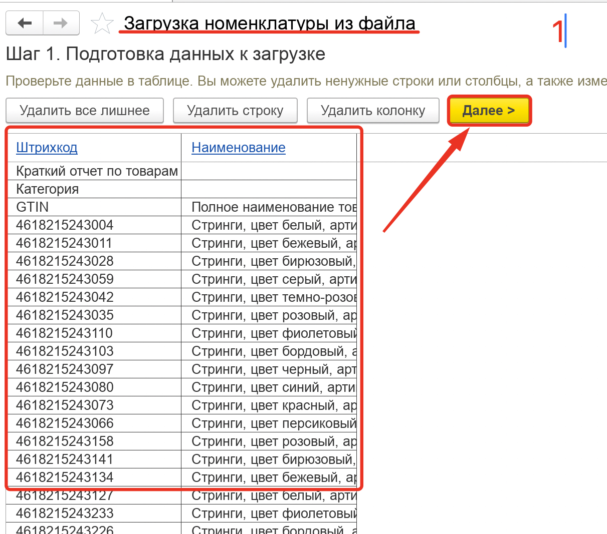 Здравствуйте Ольга. В списке на скрине не вижу наименования номенклатуры. Оно есть?