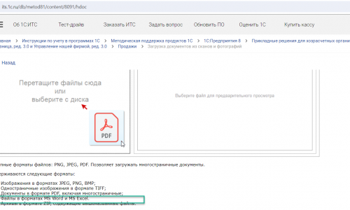Если у вас установлено приложение «1С:Распознование документов», то, согласно описанию разработчиков, приложение поддерживает загрузку из файлов вида: