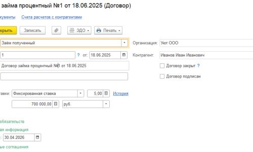 Займы от учредителя в 1С 8.3 Бухгалтерия