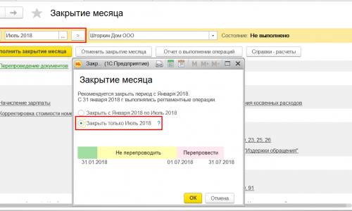 После этого нажимаете на кнопку Выполнить закрытие месяца, еще раз подтверждаете, что будите закрывать только выбранный месяц. После этого будет выполнено закрытие месяца.