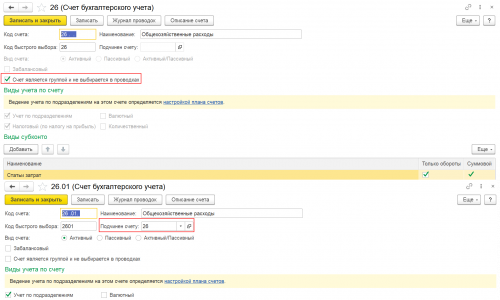 Субконто в 1С