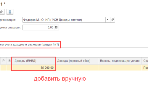 Регистр Книга усчета доходов( патент) — добавить вручную, заполнить данными как в скрине