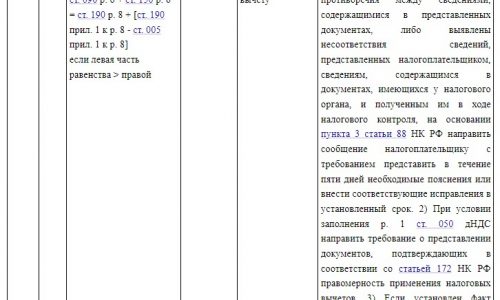 При выявлении налоговым органом противоречий, несоответствий между сведениями об операциях, содержащимися в налоговой декларации по налогу на добавленную стоимость, сведениям об указанных операциях, содержащимся в налоговой декларации по налогу на добавленную стоимость, представленной в налоговый орган другим налогоплательщиком, или в журнале учета полученных и выставленных счетов-фактур (далее — Расхождения), будет направлено требование о представлении пояснений (далее — Требование)…