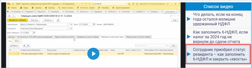 По вопросу синхронизации и проводок посмотрите пожалуйста Светлана Змиевская объясняет нюансы в видео — выделено красным (смотрите примерно с 6 минуты) Излишне удержанный налог — как отразить в 6-НДФЛ и списать «хвосты»