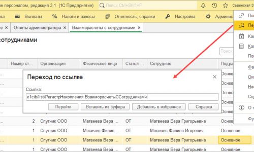Еще можно посмотреть регистр накопления Взаиморасчеты с сотрудниками. Вверху справа кнопка Сервис и настройки — Перейти по ссылке — вставить вот эту ссылку — e1cib/list/РегистрНакопления.ВзаиморасчетыССотрудниками — Перейти.