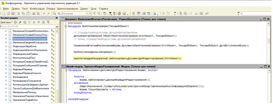 Вопрос: у профиля Специалист по охране труда есть роль Чтение штатного расписания, которая дает право только на просмотр. Почему Старший кадровик не может внести изменения в документ Изменение штатного расписания, пока он открыт у Специалиста по охране труда. Специалист по охране труда может находится далеко от кадровика и просто открыть документ и забыть.