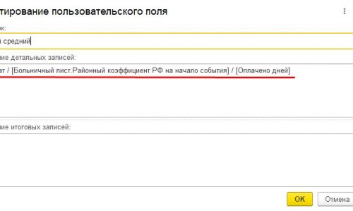 Это отчет по табличной части Начисления документов Больничный лист. А поле «Дневной средний» — это пользовательское поле: