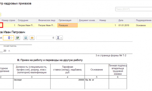 У меня в этом документе нет поля «Регистратор». Есть — «Документ основание». Что здесь я должна выбрать? Этот же самый документ? При выборе типа данных нет возможности выбрать мою начальную штатную расстановку. Даже если я документ-основание оставляю пустым, все равно 2 строки в карточке Т-2.