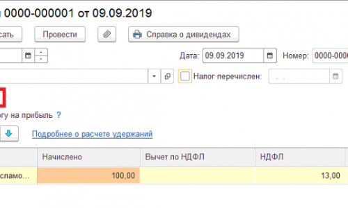 Если дивиденды выплачивает АО – срок перечисления НДФЛ не позднее месяца с даты выплаты дивидендов (подп. 3 п. 9 ст. 226.1 НК РФ). Я так понимаю логика у разработчиков следующая, если пользователь ставит галочку «Включать в декларацию по налогу на прибыль», значит форма собственности у организации АО, прибавляем месяц к дате выплаты.