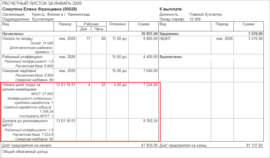 Дни по уходу за ребенком-инвалидом из регионального МРОТ