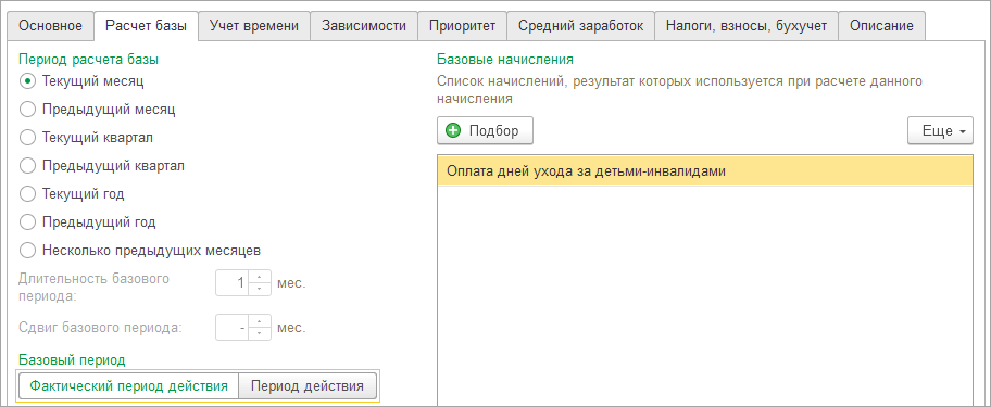 — если нужно чтобы она облагалась также как и основная оплата дней ухода за ребенком-инвалидом, то повторяем настройки, как для основной оплаты.