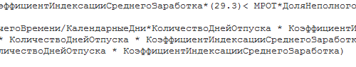 ?(СреднийЗаработокОбщий*КоэффициентИндексацииСреднегоЗаработка*(29.3)< МРОТ*ДоляНеполногоРабочегоВремени, МРОТ*ДоляНеполногоРабочегоВремени/КалендарныеДниМесяца*КоличествоДнейОтпуска * КоэффициентИндексацииСреднегоЗаработка, СреднийЗаработокОбщий * КоличествоДнейОтпуска * КоэффициентИндексацииСреднегоЗаработка)