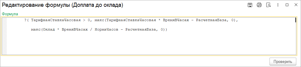 макс(Оклад * ВремяВЧасах / НормаЧасов — РасчетнаяБаза, 0)