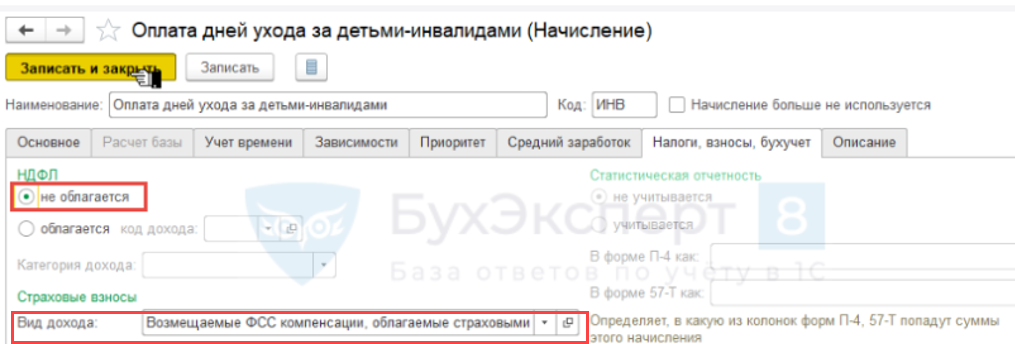 — В отчете 6-НДФЛ не отражается и НДФЛ не облагается: Оплата дней ухода за детьми инвалидами не облагается НДФЛ (ЗУП 3.1.10.78)