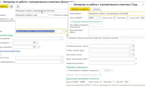 Должность Менеджер по работе с корпоративными клиентами, код ОКПДТР 24068 из раздела Специалисты справочника, а в форме 57-Т отнесена к категории Руководители — 1;