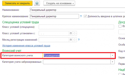 Здравствуйте! Для отчета создан фиксированный макет. На отображение данных можно повлиять только установив отбор, группировка не сработает. Программа ведет расчет по категориям воинского учета в справочнике «Должности».