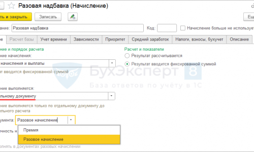 Нам нужно настроить начисление по отдельному документу Разовое начисление